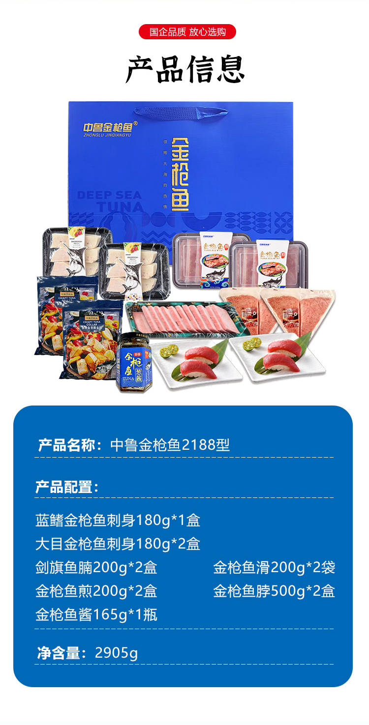 中鲁深海金枪鱼源自大洋的珍馐,深海捕捞无污染,刺参界的“刺身之王”捕捞后鲜活急冻冷链运输,鱼肉细腻口感爽滑,解冻即可烹饪,无需复杂处理。多款礼盒配置,适合客户答谢,商务礼赠等场景。