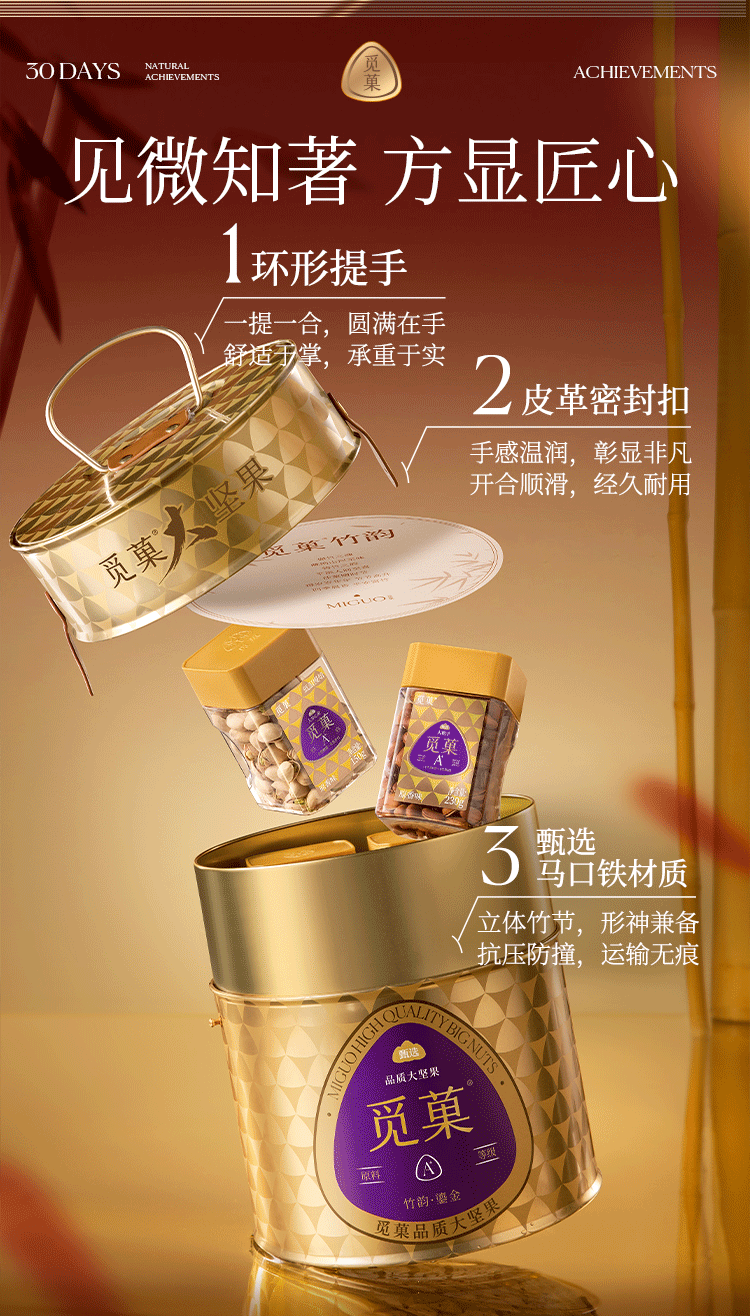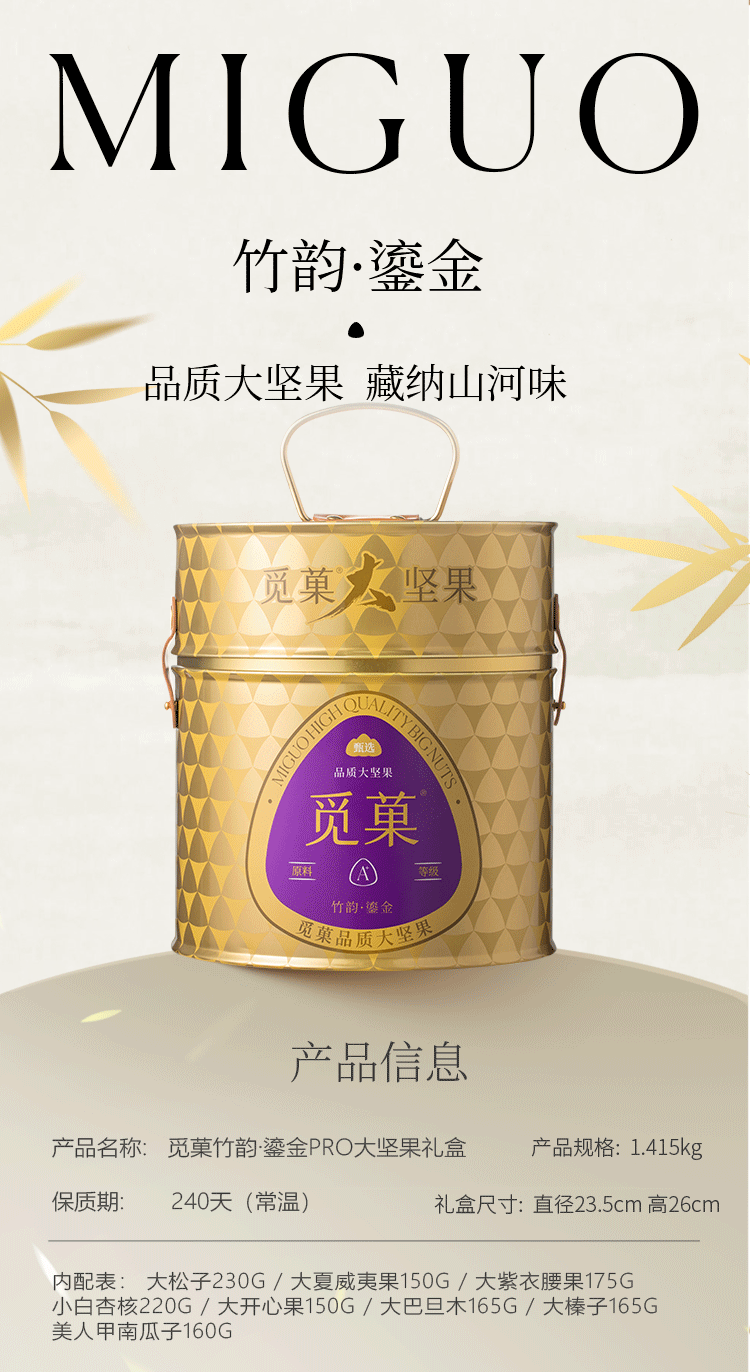 觅菓大坚果(觅菓礼盒鎏金Pro款8罐)竹韵坚果礼盒