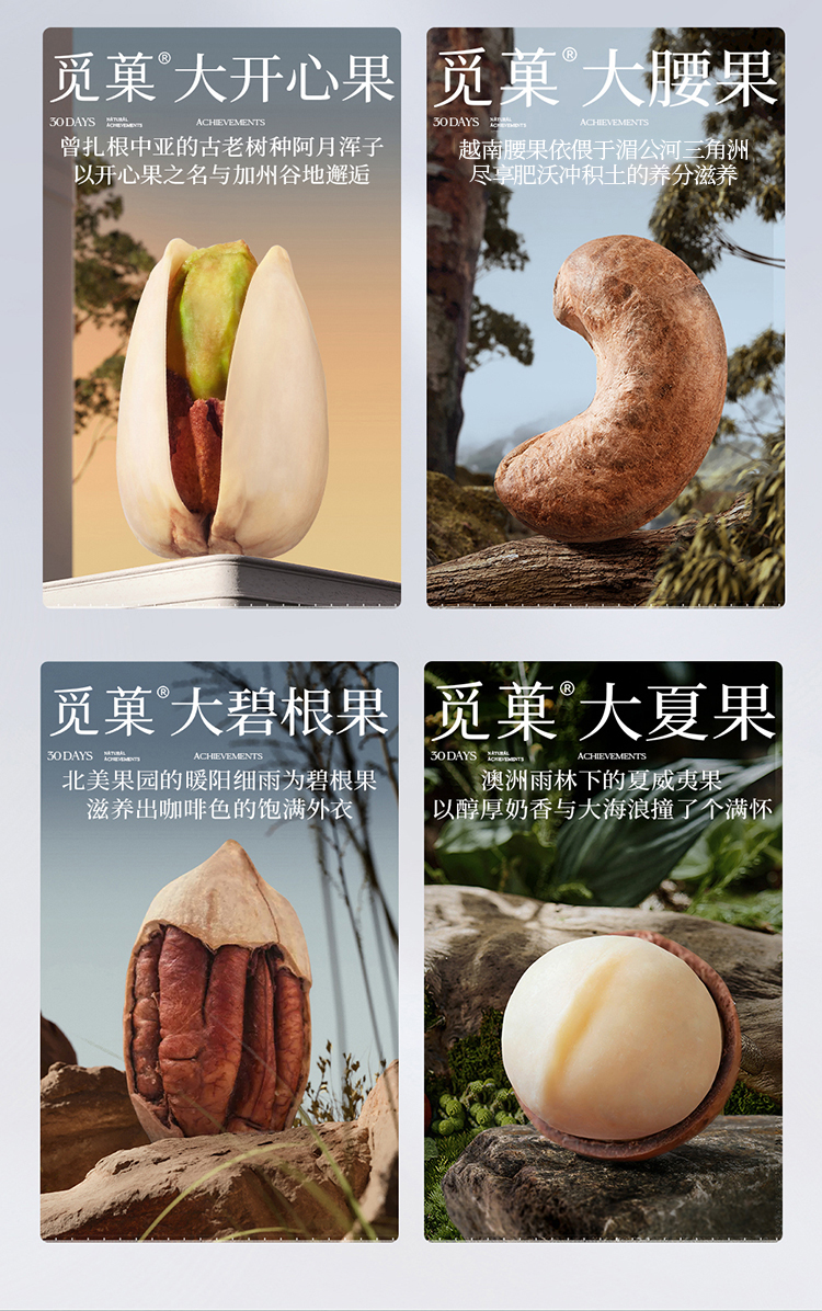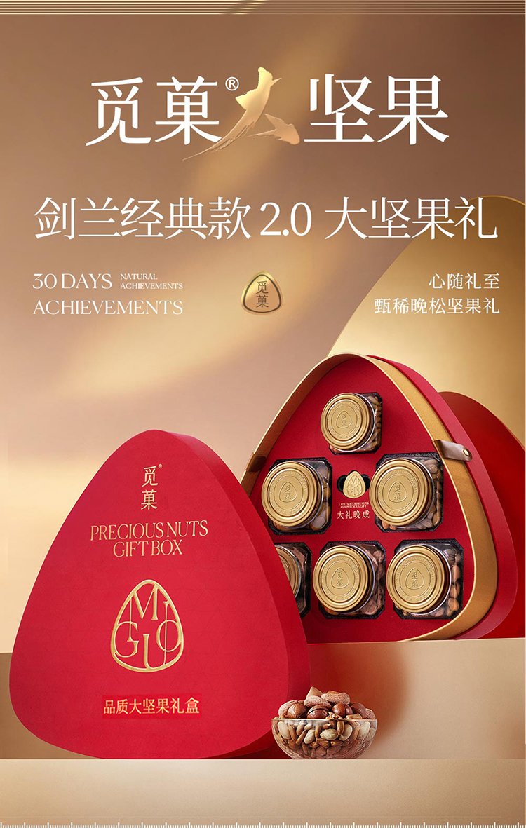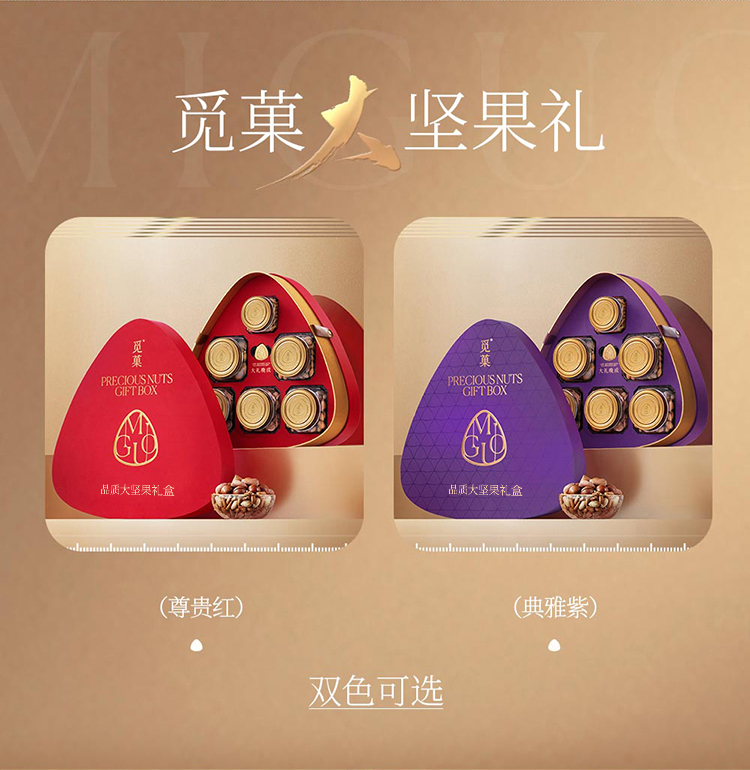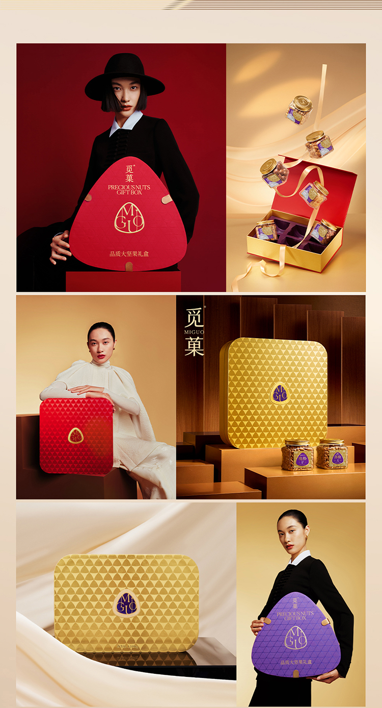 觅菓坚果配置丰富,选材严谨、礼盒设计符合现代社会审美,适合企业员工福利发放、答谢客户、商务礼赠等场景,企业团购优惠多多,欢迎选购。