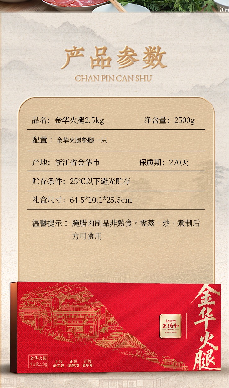 正德和金华火腿-2.5千克金藏火腿整腿礼盒