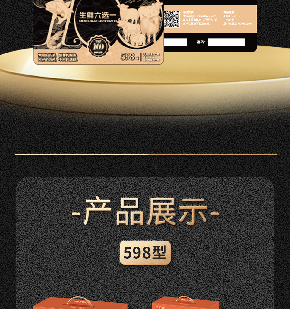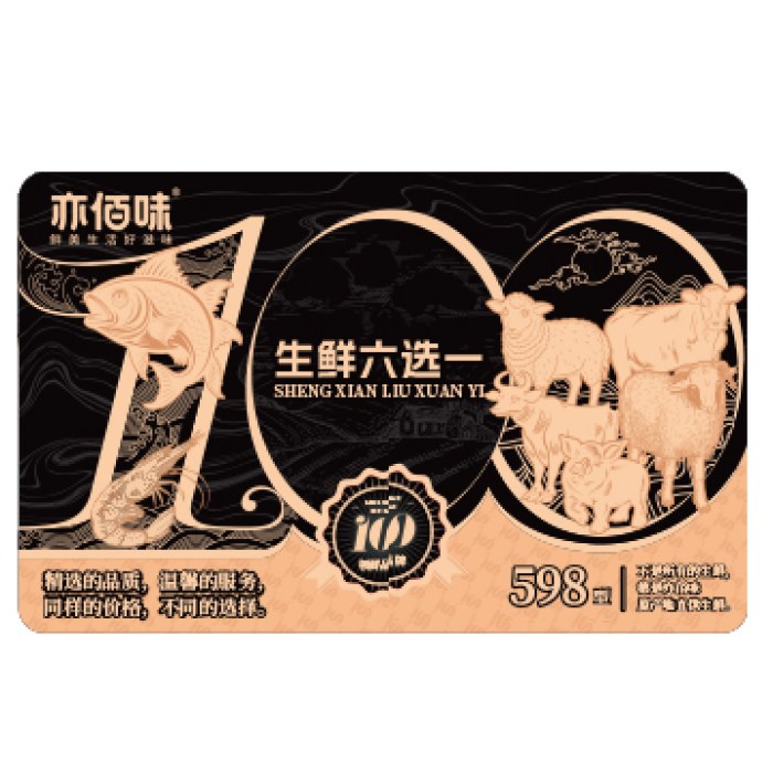 亦佰味生鲜卡(598型)6选1礼品卡全国通用