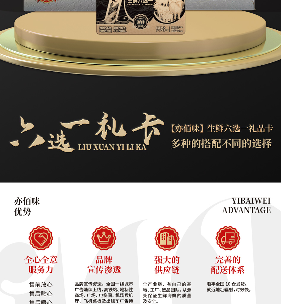 亦佰味生鲜卡(998型)6选1礼品卡全国通用