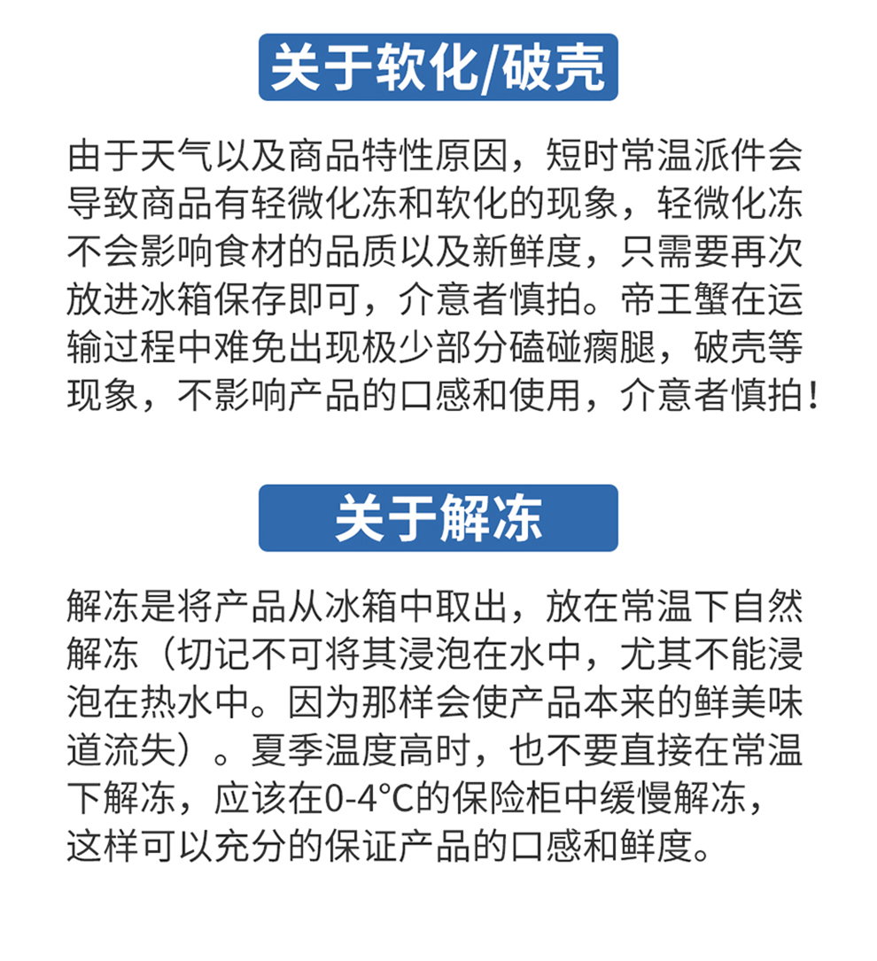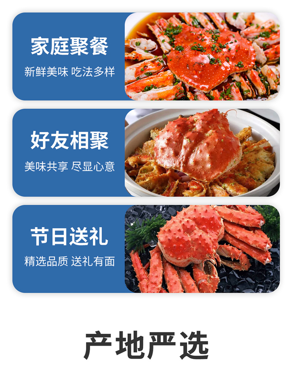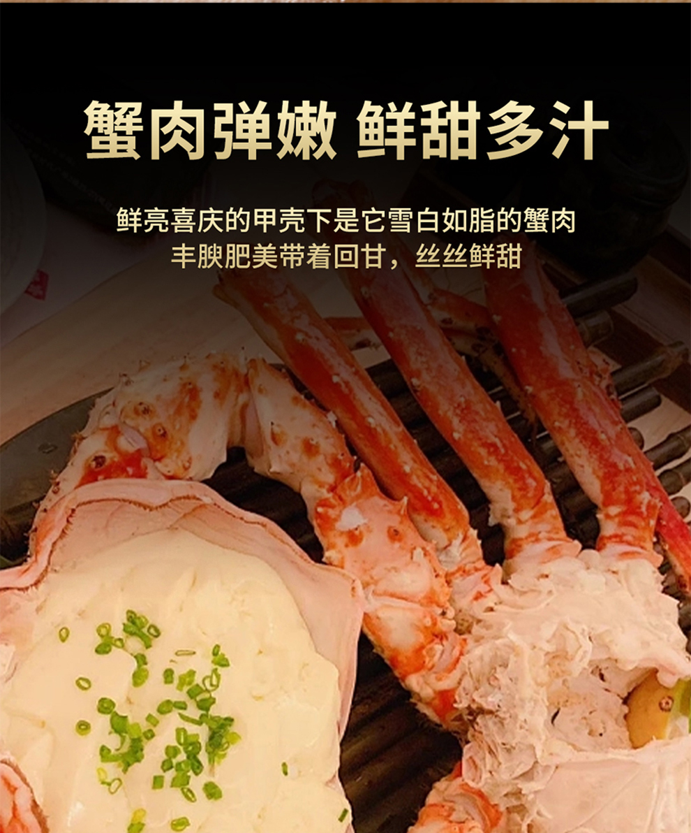 智利帝王蟹生活于深海,生存深度达850米之深,因此远离污染,肉质鲜美营养丰富,帝王蟹捕捞上传后,立即在船上熟冻加工处理,保证帝王蟹的鲜度和口感。