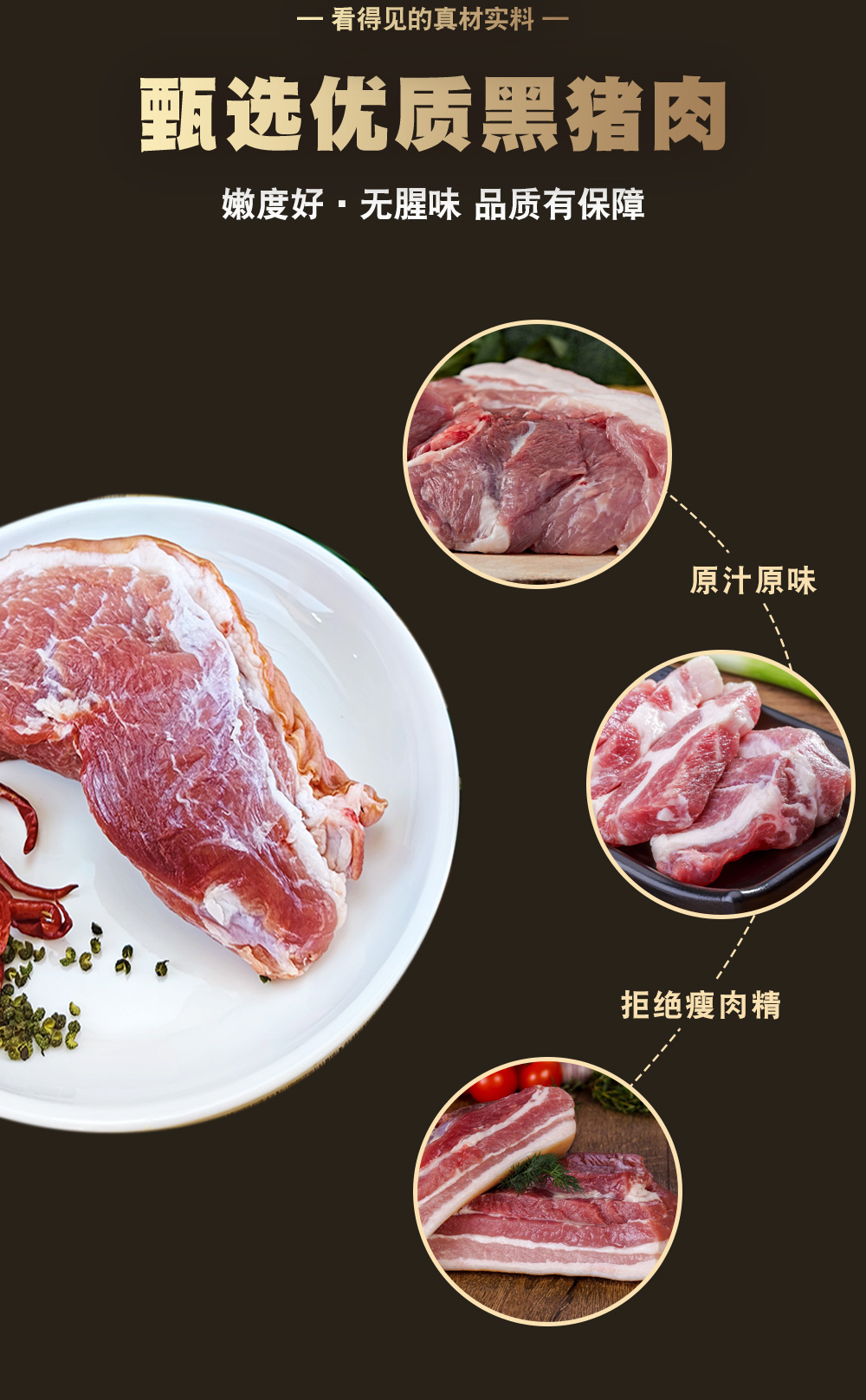 亦佰味黑猪肉源自长白山猪肉,地道散养黑毛猪,好山好水好气候、孕育优质好猪肉,肉质肥瘦相间有嚼劲,现宰先发保证每一口都新鲜;平台提供黑猪肉实物礼盒与猪肉礼券提货卡多种销售方式,适合送礼、答谢客户、商务馈赠等多种场景,可提供实物代发,企业团购集采,欢迎咨询选购。