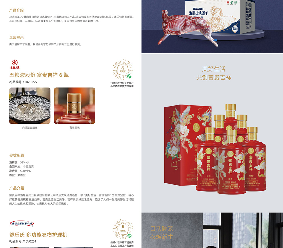 | 礼册优势: | 吉时礼自选礼包节日版本,是为全国福利市场、高端馈赠群体提供节日礼品解决方案,多元菜单融合不同品类的头部大品牌,满足各类喜好,让众口不再难调。用吉时礼扫码转赠,轻松便捷,人工售后客服团队,每周 7 天、每天24 小时随时待命,至今已连续运营 10 年以上,每年服务用户超100万人次。受人之托、忠人之事,传情达意,使命必达。 |
