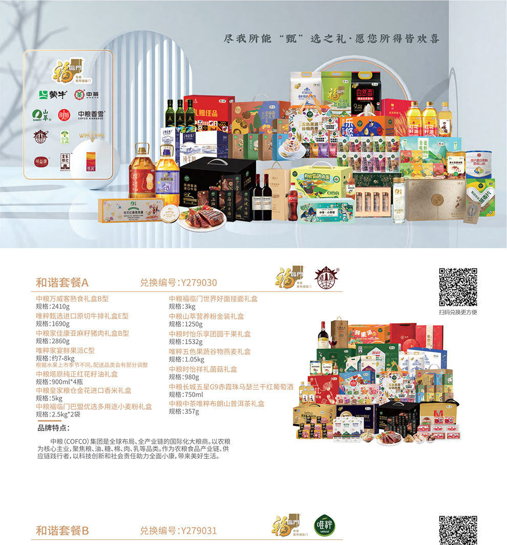 2026家宴甄选通用自选礼品册,是为日常选礼及送礼用户提供礼品解决方案,礼品册在内容搭配上甄选中粮集团旗下10款食品和一线品牌商务品,内容丰富多样,可满足不同收礼人需求,主要用于日常送礼、客户答谢、商务馈赠、慰问员工、送领导等场景,让您选礼更轻松、收礼更满意。