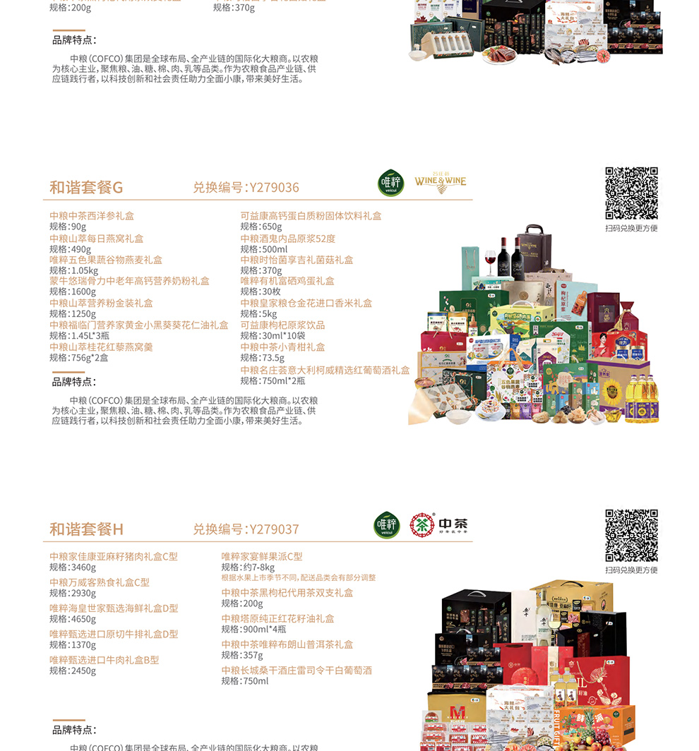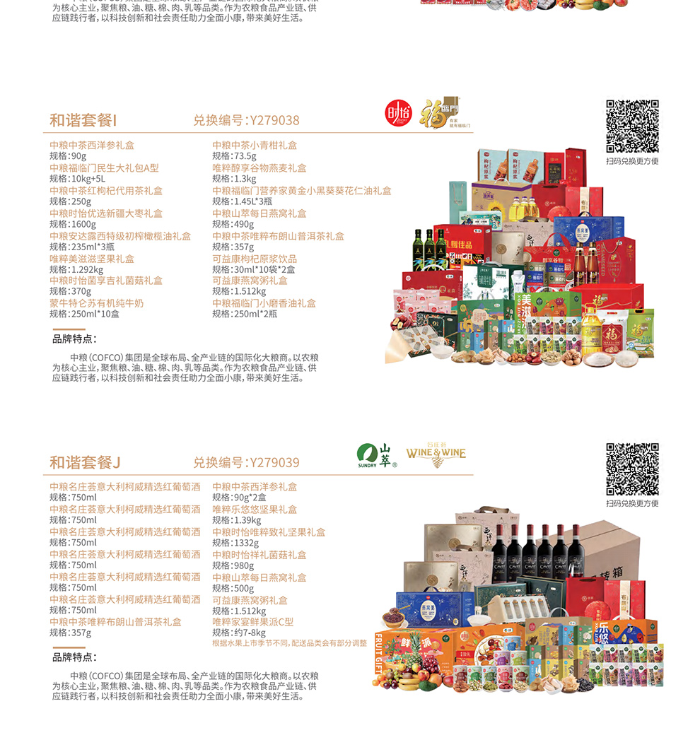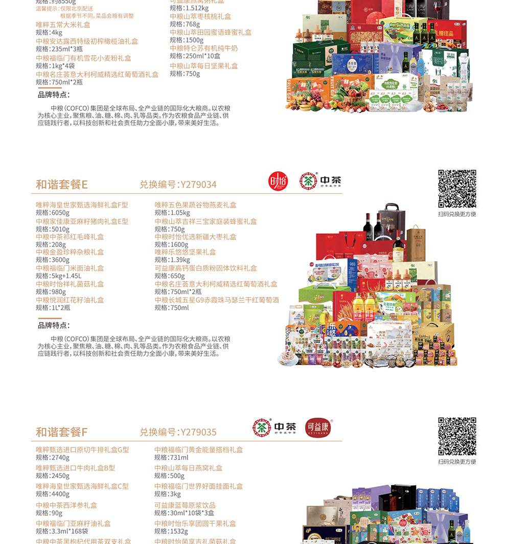 | 礼册优势: | 家宴甄选通用版自选礼品册不包含节日及时令性产品,20款产品全年均可提货,在产品配置上搭配了10款中粮集团旗下食品套餐,食品安全更放心,另外还有10款家用商务品可选,持册人可以从礼品册20个方案中任意选择一款喜爱的套餐提货,全国免费配送上门,省去了您选品、采购、发货的时间成本,也让送出去的礼物更贴心意。 |