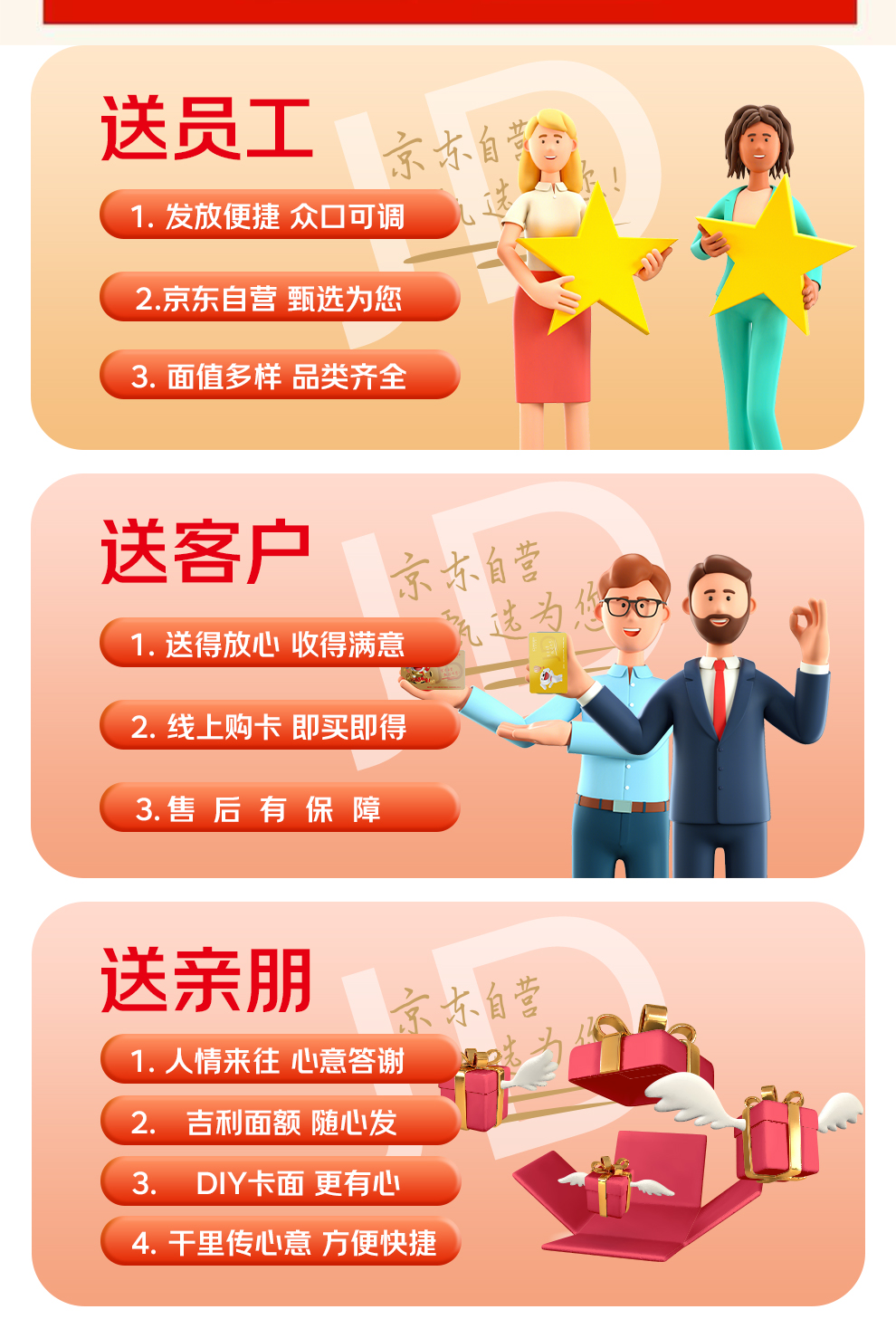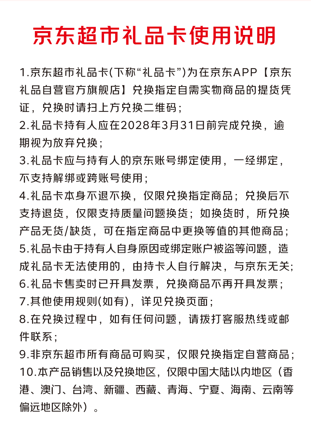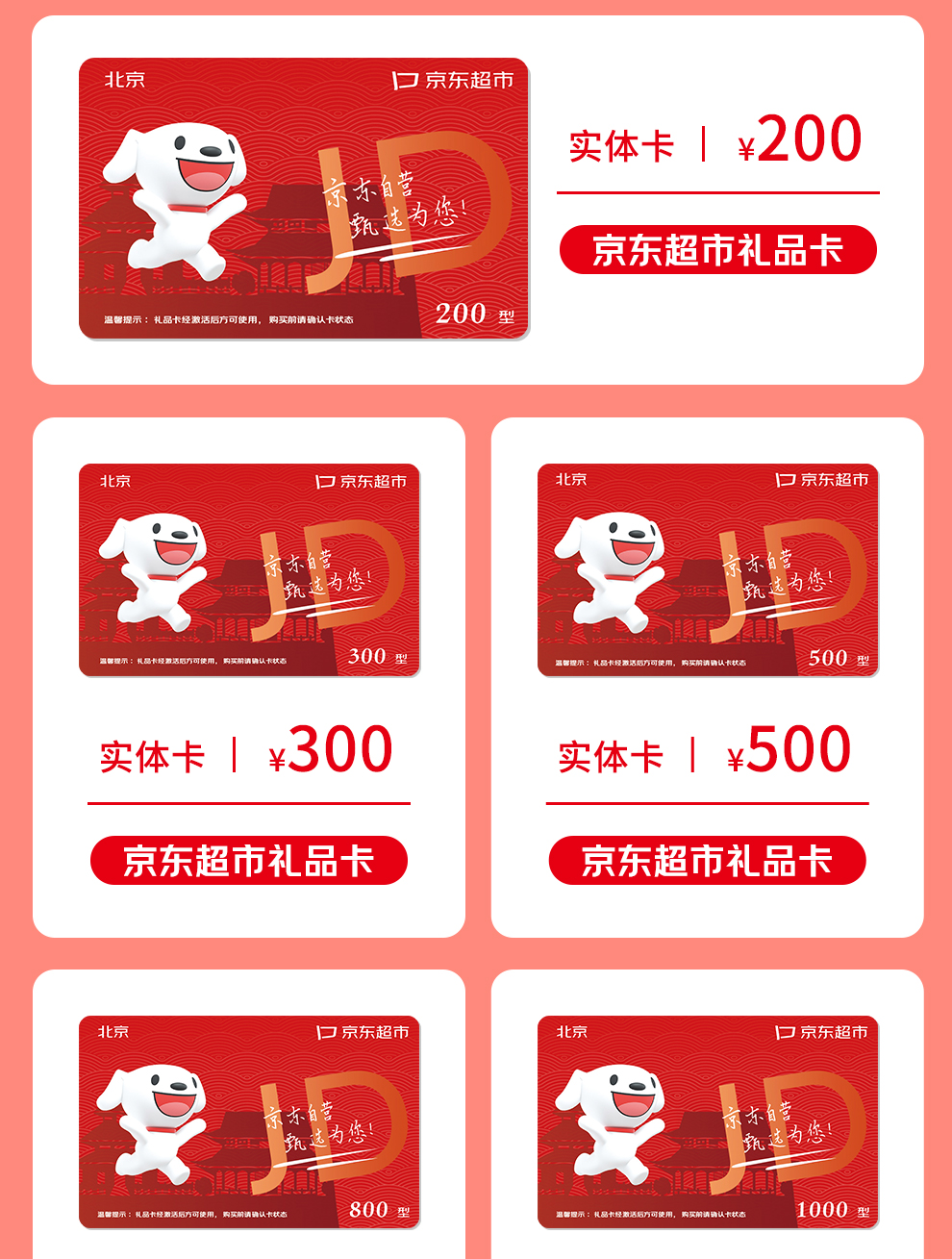 京东超市礼品卡是目前唯一一家集制卡、发卡、兑换、发货、售后全链路京东闭环的礼品卡,持卡人可通过京东APP平台兑换商品,京东物流履约发货;本款京东卡礼品池丰富多彩,所有兑换商品均为京东自营商品,商品品质有保障。