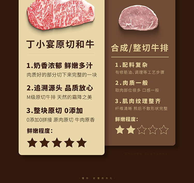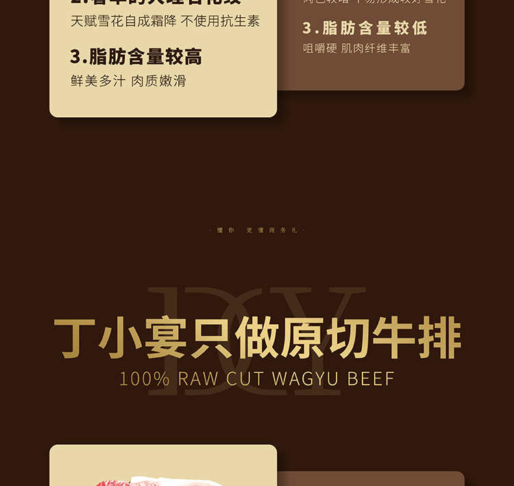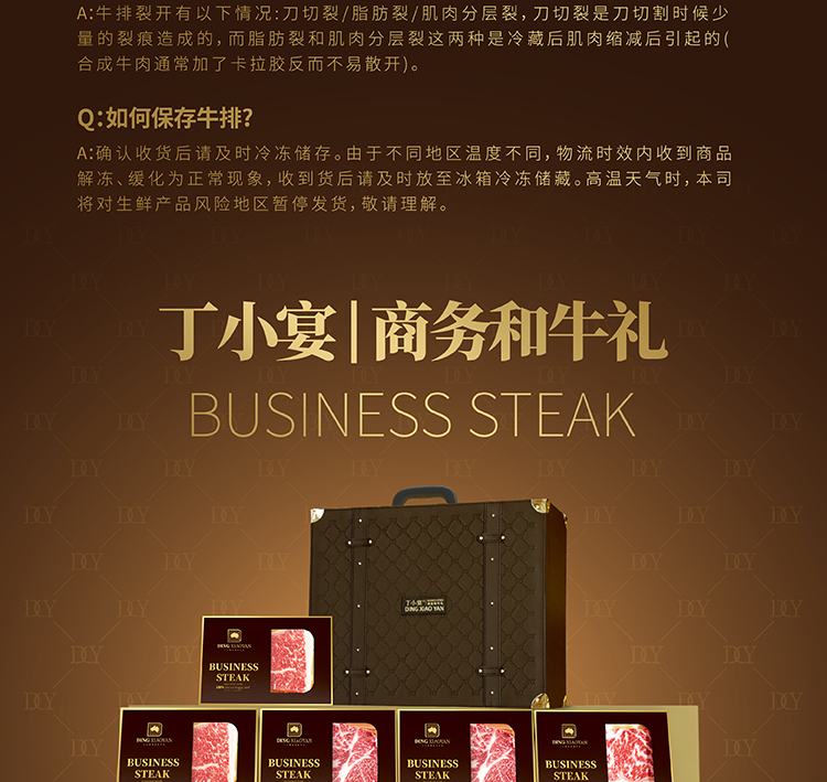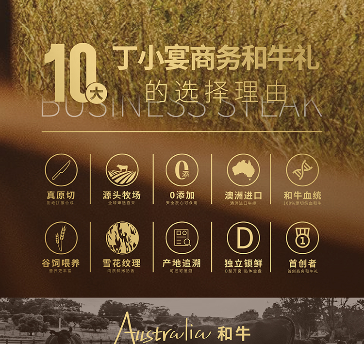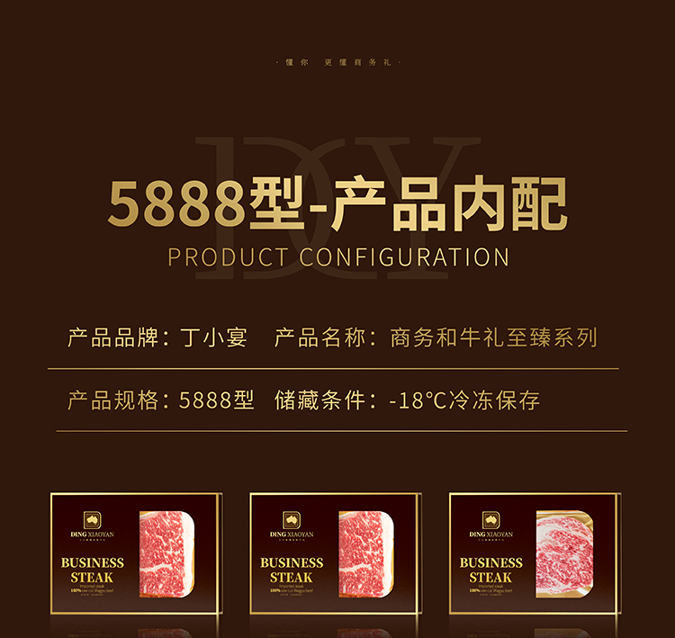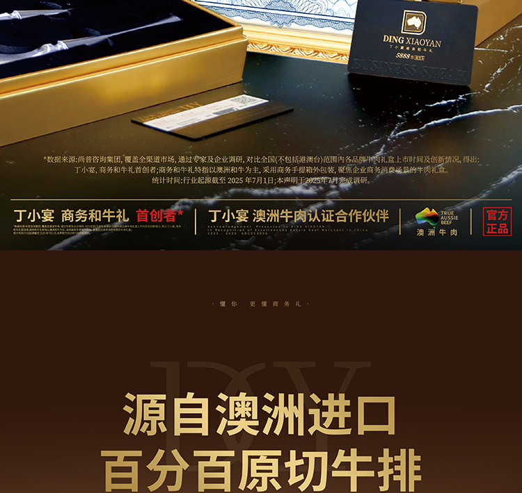 丁小宴商务和牛,轻奢系列,让您体验触手可及的精致奢华,和牛源自澳洲进口100%原切,0注水|0合成|0添加|0容忍,让您商务赠礼更有格调,适合大客户关系维护,答谢领导,商务往来等使用场景。为保证产品的配送服务,下单后发货为和牛提货卡。