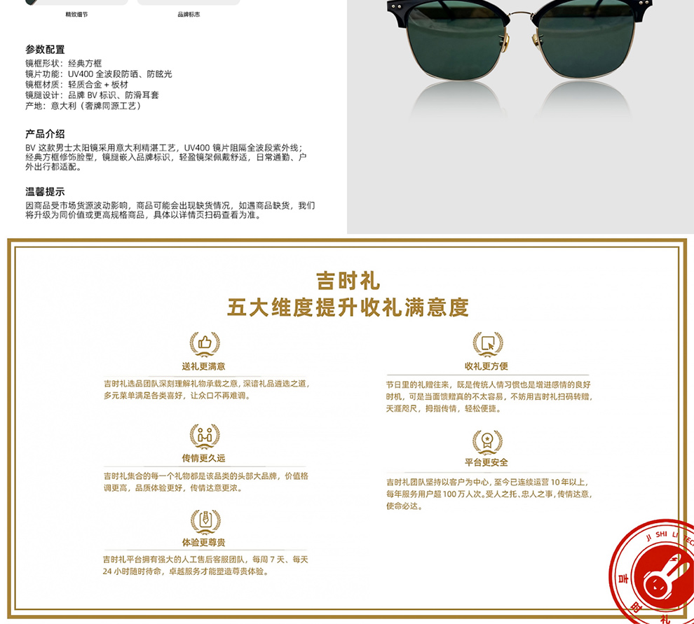 服务内容: 全年销售吉时礼自选礼包通用版本(不包含时令性、季节性产品)主要为日常送礼客户提供选礼、送礼解决方案