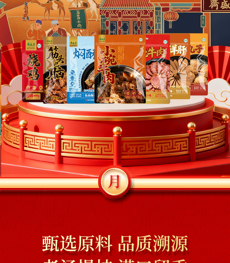 月盛斋是创始于清乾隆四十年(1775年)的中华老字号,隶属北京二商肉食集团,主营酱牛羊肉制品,制作技艺源于清宫御膳房,现形成包含传统酱烧、即食、速冻等百余种产品的体系。