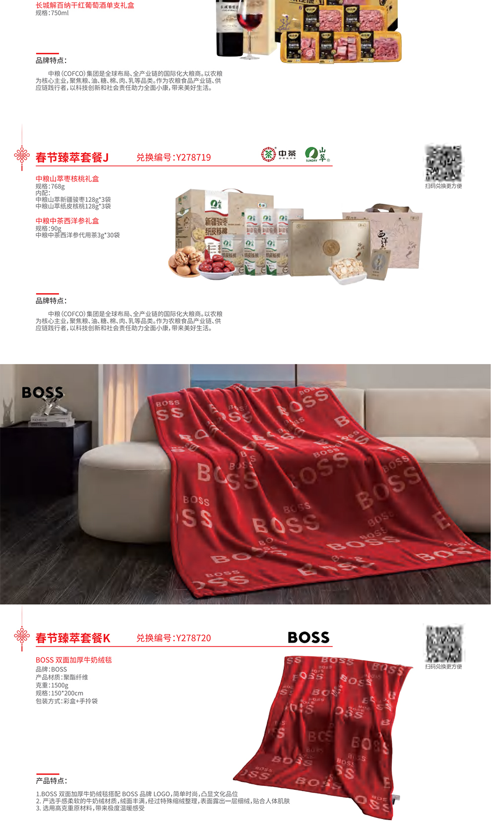 | 产品用途: | 节日送礼、慰问员工、送客户、送领导、送亲友、商务馈赠、礼尚往来等多种应用场景 |