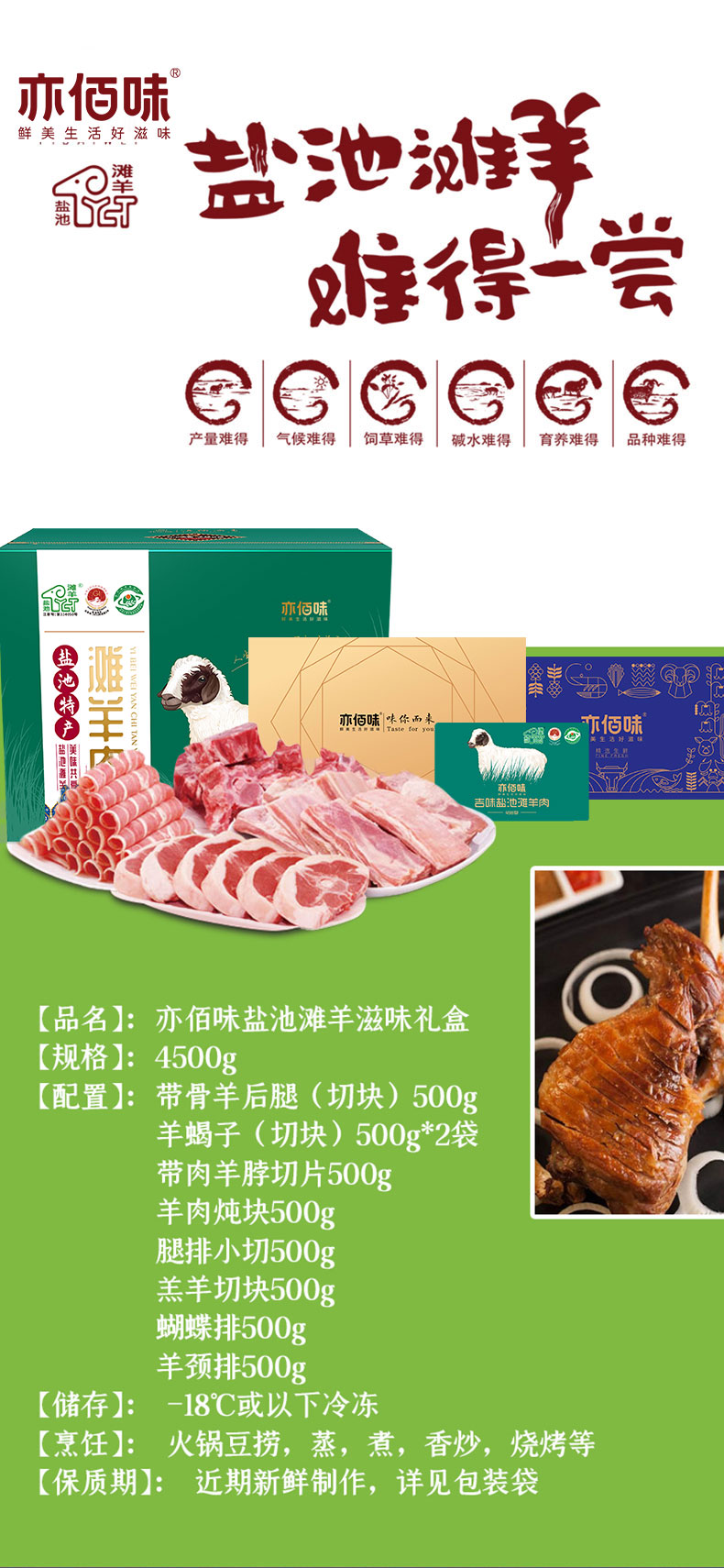 亦佰味盐池滩羊产自宁夏盐池地区,是全国农产品地理标志产品,滩羊因其特殊的生长环境,羊肉色泽鲜红,脂肪乳白,分布均匀,含脂率低,受到了消费者的一致好评。适合节日送礼、客户答谢、商务馈赠等多种场景,提供盐池滩羊现货团购、一件代发、礼品卡宅配等多种销售方式,欢迎选购。