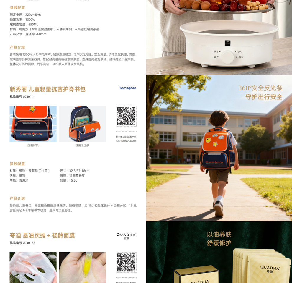 山海礼选礼册【礼品册行业领导品牌】为全国礼赠客户提供选礼、送礼解决方案,卡册由专业团队精选20款高品质商品入册,提供礼物视频预览、一键转赠、全天24小时人工售后,持册人兑换后全国48小时送达。适合企业福利发放、商务高端慰问、节日送客户等多种场景。