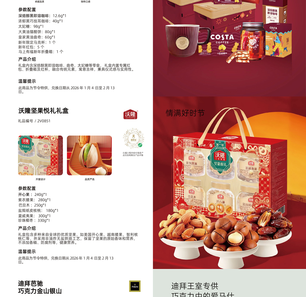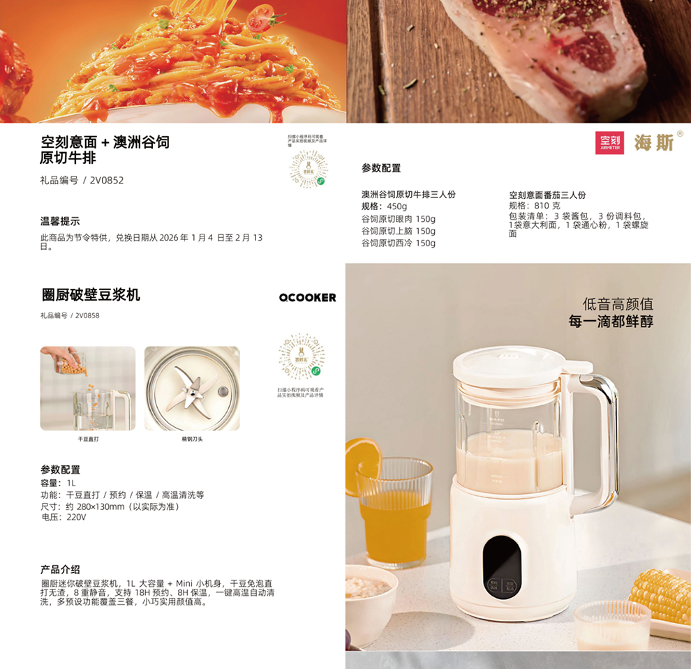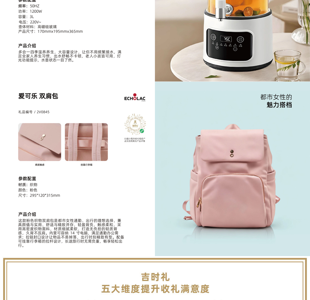 | 礼册优势: | 吉时礼自选礼包节日版本,是为全国福利市场、高端馈赠群体提供节日礼品解决方案,多元菜单融合不同品类的头部大品牌,满足各类喜好,让众口不再难调。用吉时礼扫码转赠,轻松便捷,人工售后客服团队,每周 7 天、每天24 小时随时待命,至今已连续运营 10 年以上,每年服务用户超100万人次。受人之托、忠人之事,传情达意,使命必达。 |