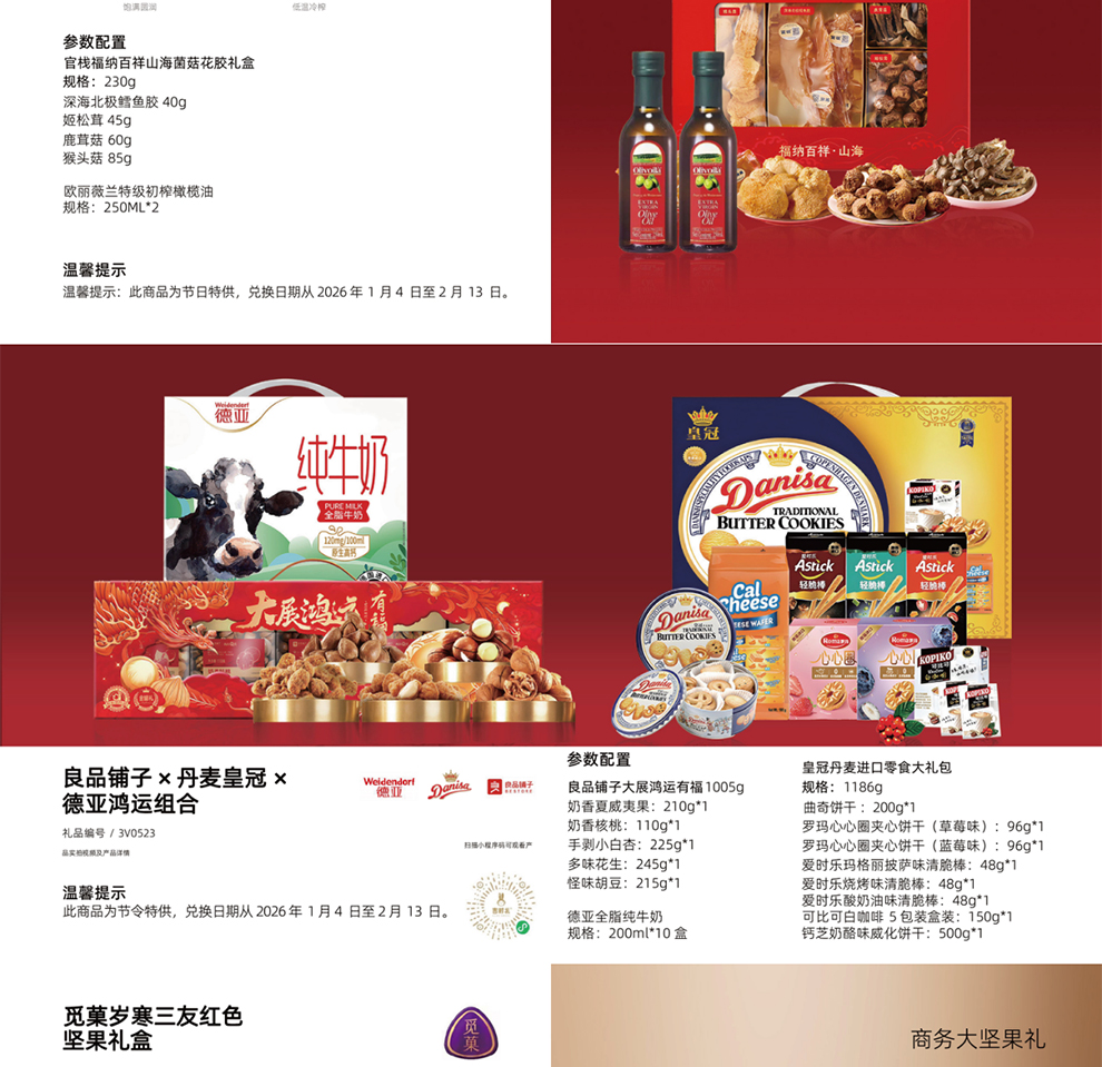 | 礼册优势: | 吉时礼自选礼包节日版本,是为全国福利市场、高端馈赠群体提供节日礼品解决方案,多元菜单融合不同品类的头部大品牌,满足各类喜好,让众口不再难调。用吉时礼扫码转赠,轻松便捷,人工售后客服团队,每周 7 天、每天24 小时随时待命,至今已连续运营 10 年以上,每年服务用户超100万人次。受人之托、忠人之事,传情达意,使命必达。 |