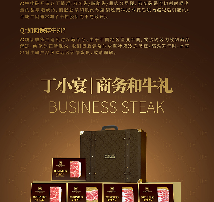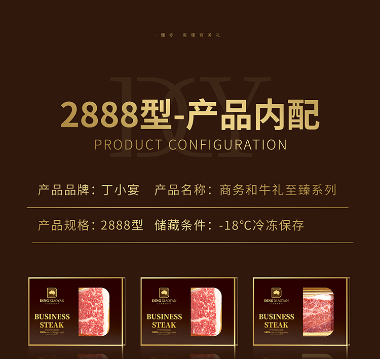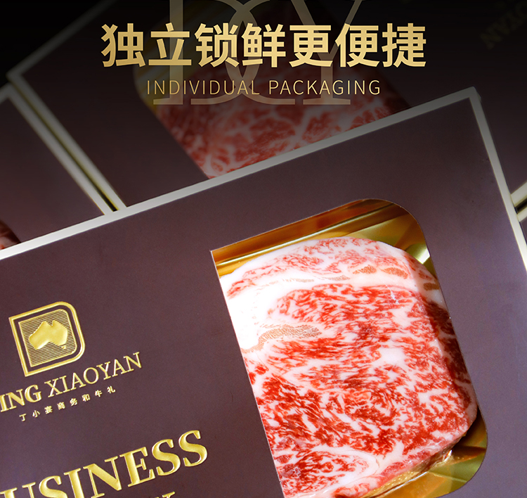 丁小宴商务和牛,轻奢系列,让您体验触手可及的精致奢华,和牛源自澳洲进口100%原切,0注水|0合成|0添加|0容忍,让您商务赠礼更有格调,适合大客户关系维护,答谢领导,商务往来等使用场景。为保证产品的配送服务,下单后发货为和牛提货卡。