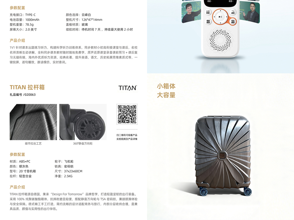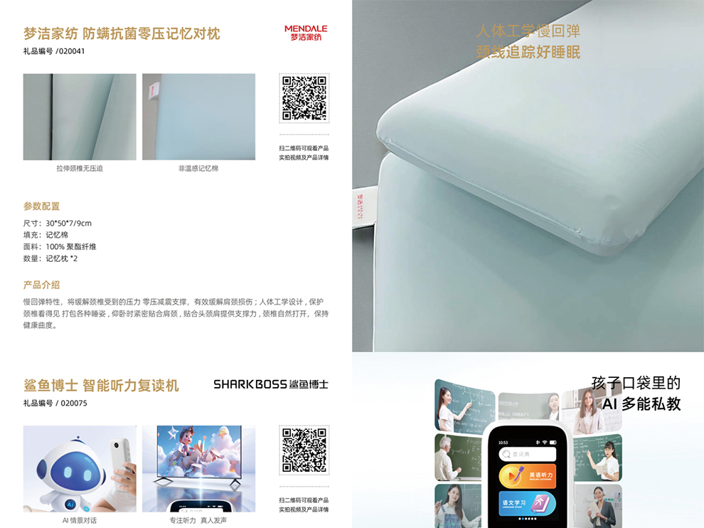| 礼册优势: | 山海礼全年通用选礼册主要为日常送礼群体提供的礼品解决方案,礼品册在配置上由专业团队精选20款高品质商品入册供收礼人自选,提供微信一键转增、视频祝福、电子贺卡等多种互动方式,还提供24小时人工售后服务、卡册免费延期、免费换新、积分换购等超值服务。 |